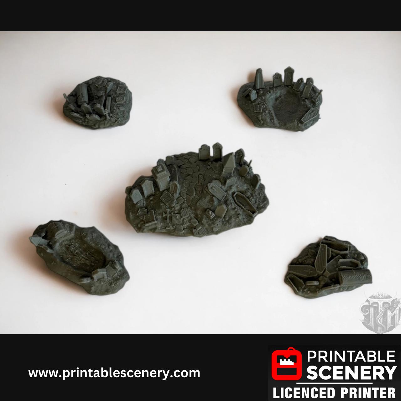 Graveyard Scatter Terrain - 5 Piece, Detailed, Haunted, 28mm, Printable Scenery, Tabletop, TTRPG, DND