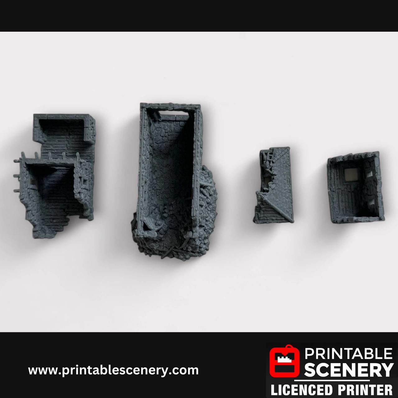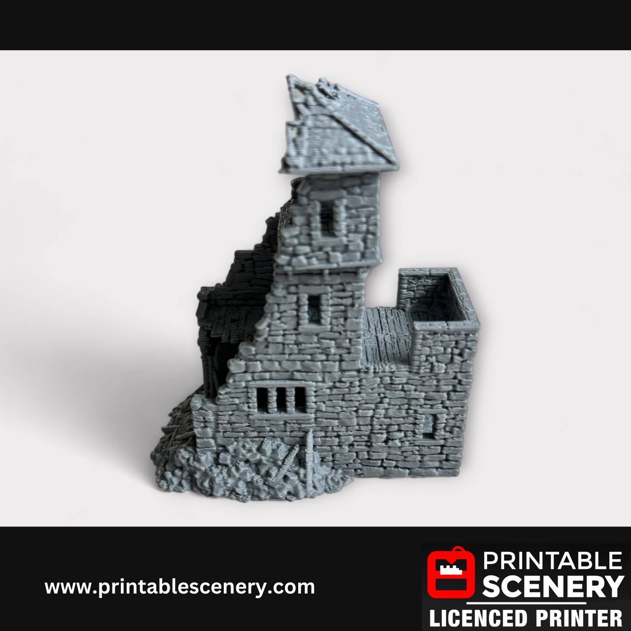Ruined Medieval Stone Castle - Kings Gate, Terrain for DND and Tabletop Games, TTRPG, 28mm, 32mm, Country and King, fort