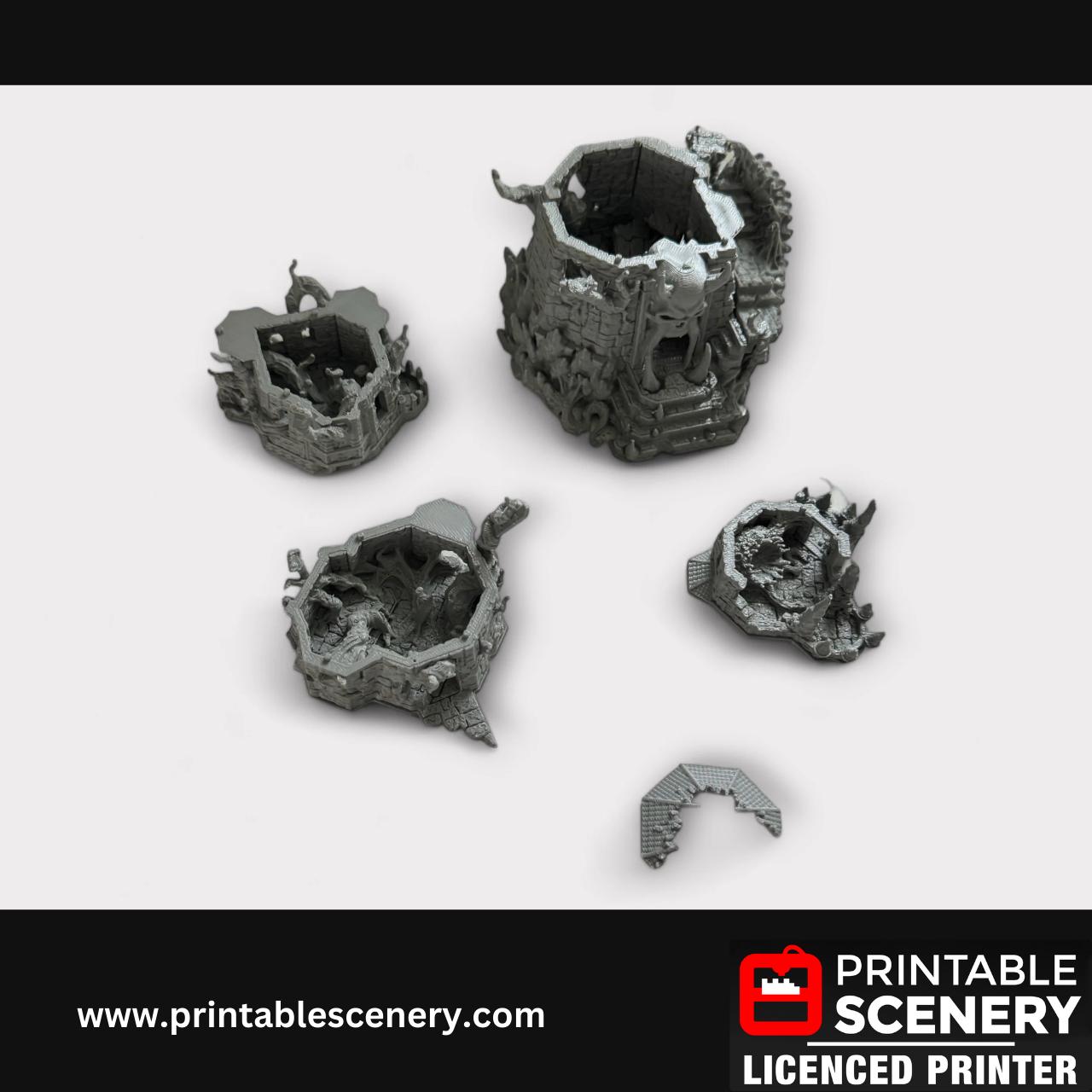Demonhelm Fortress, Scatter Terrain, DND Tabletop Decor, Handcrafted RPG Miniatures, 28mm, Minis, Printable Scenery, Fantasy