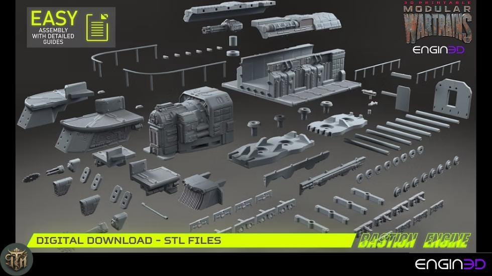 Original Design by Engin3D (kickstarter.com/projects/engine3d/modular-wartrains/description) Sold under commercial license.