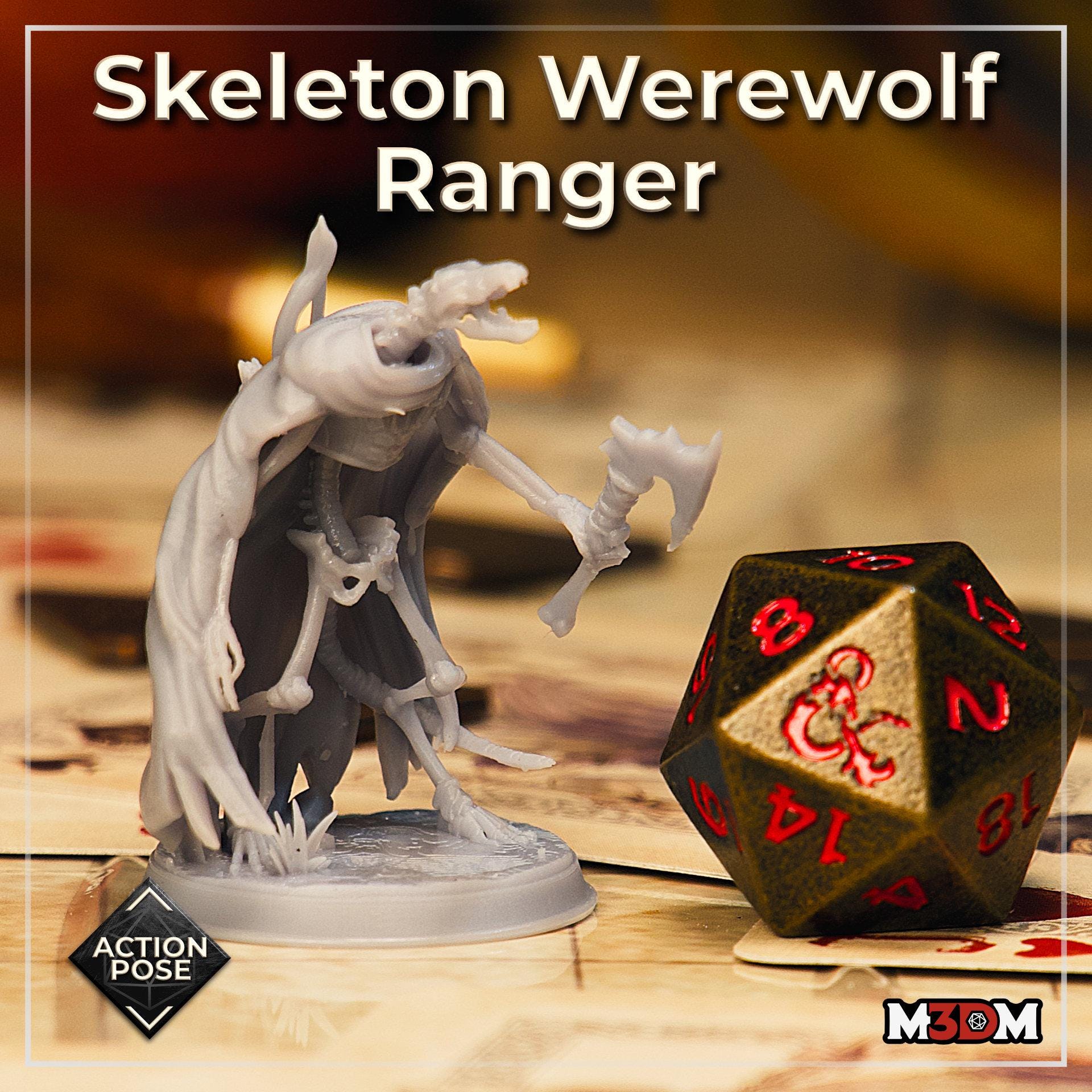 Skeleton Werewolf Ranger 2 – 28mm or 32mm Resin Miniature | D&D 3D Printed Figure Fantasy Mini