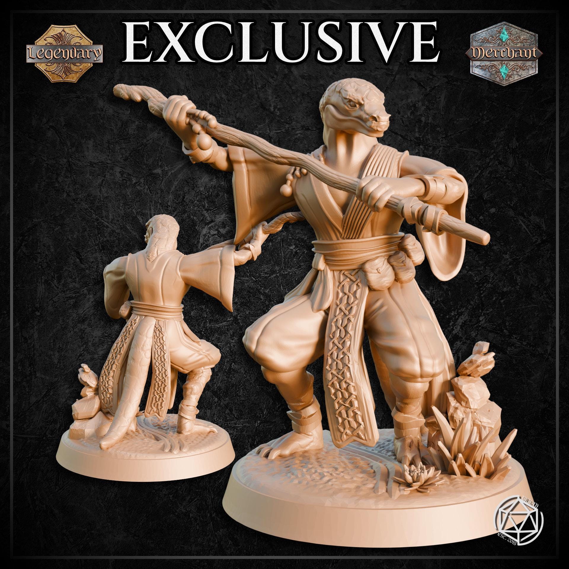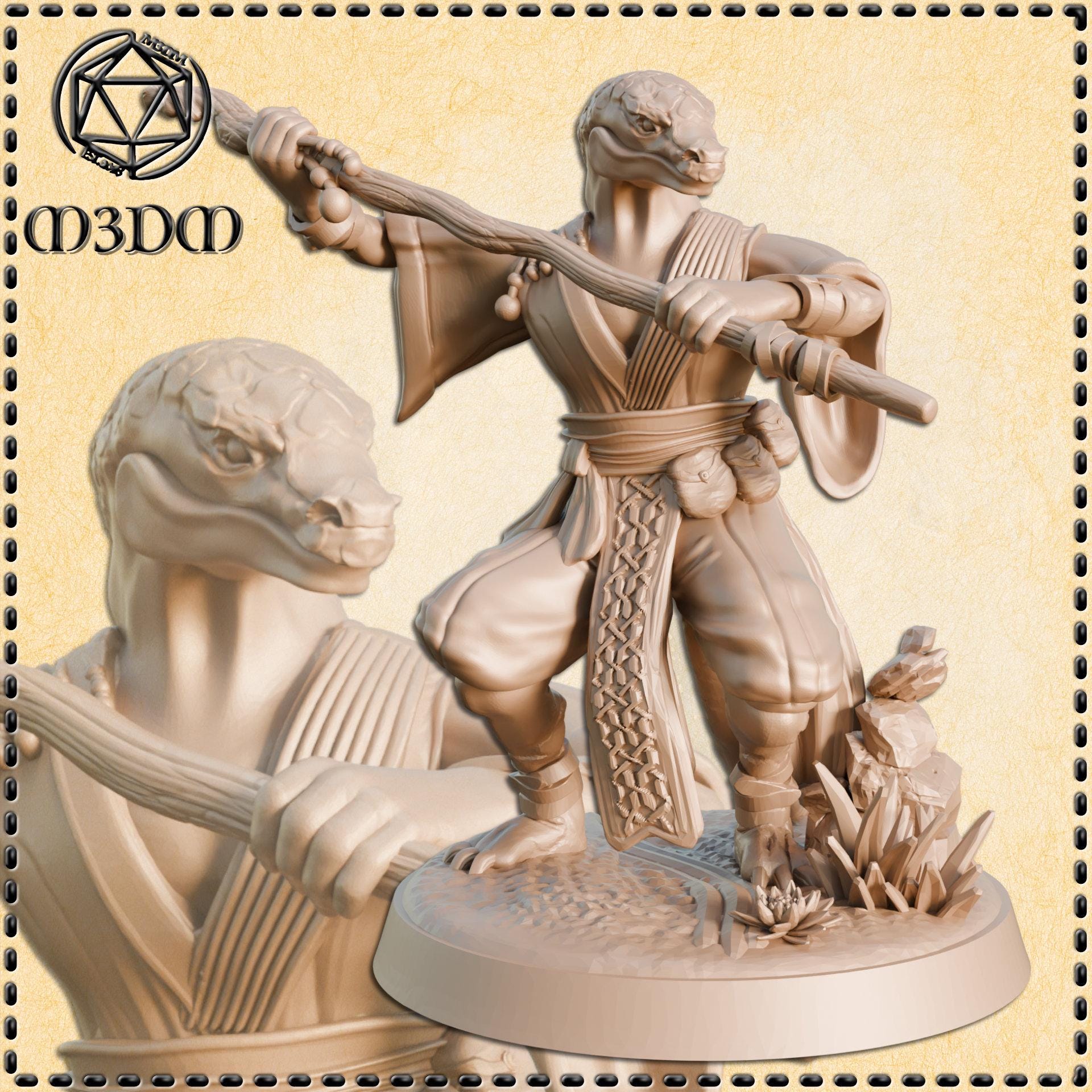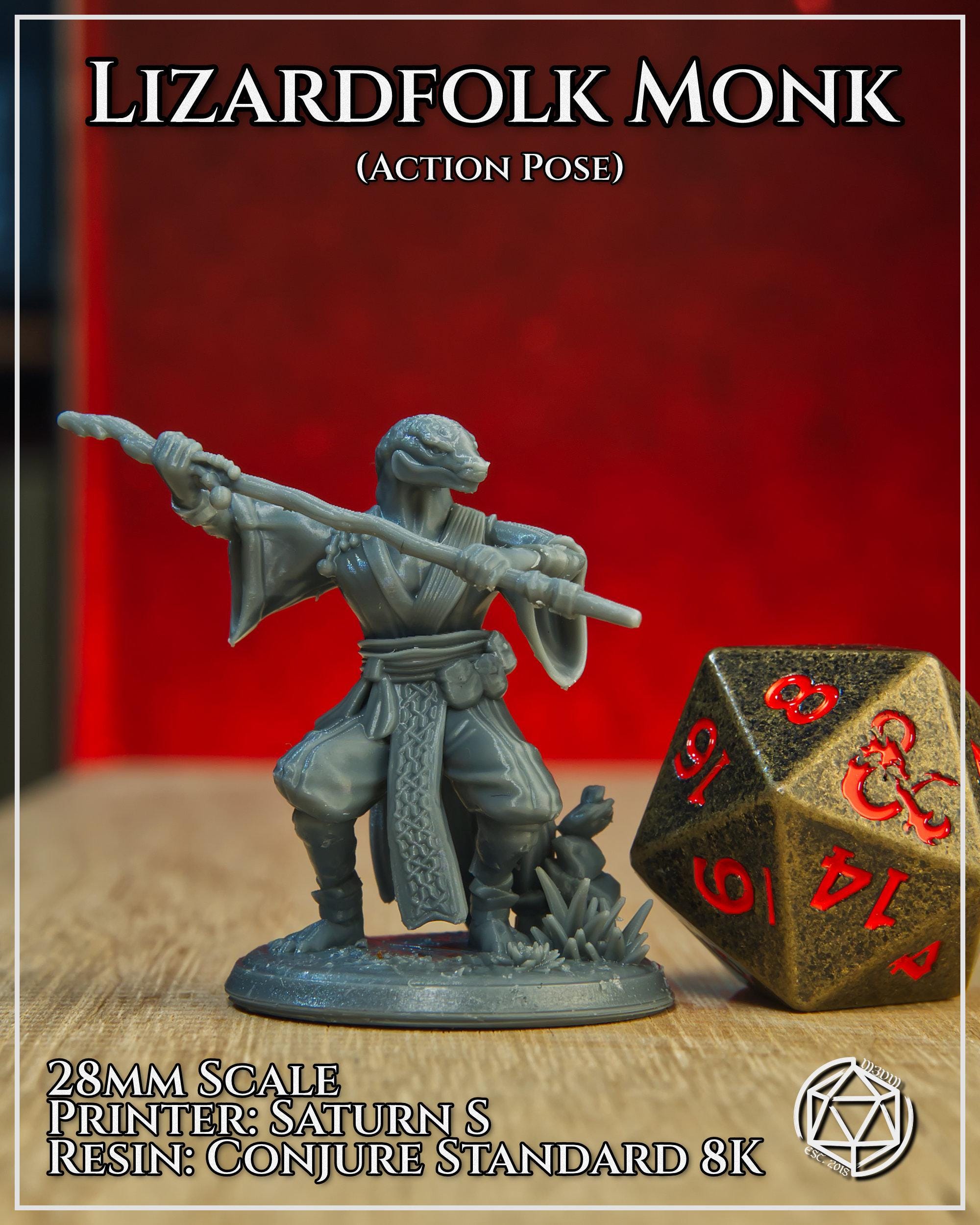 Lizardfolk Monk 2 – 28mm or 32mm Resin Miniature | D&D 3D Printed Figure Fantasy