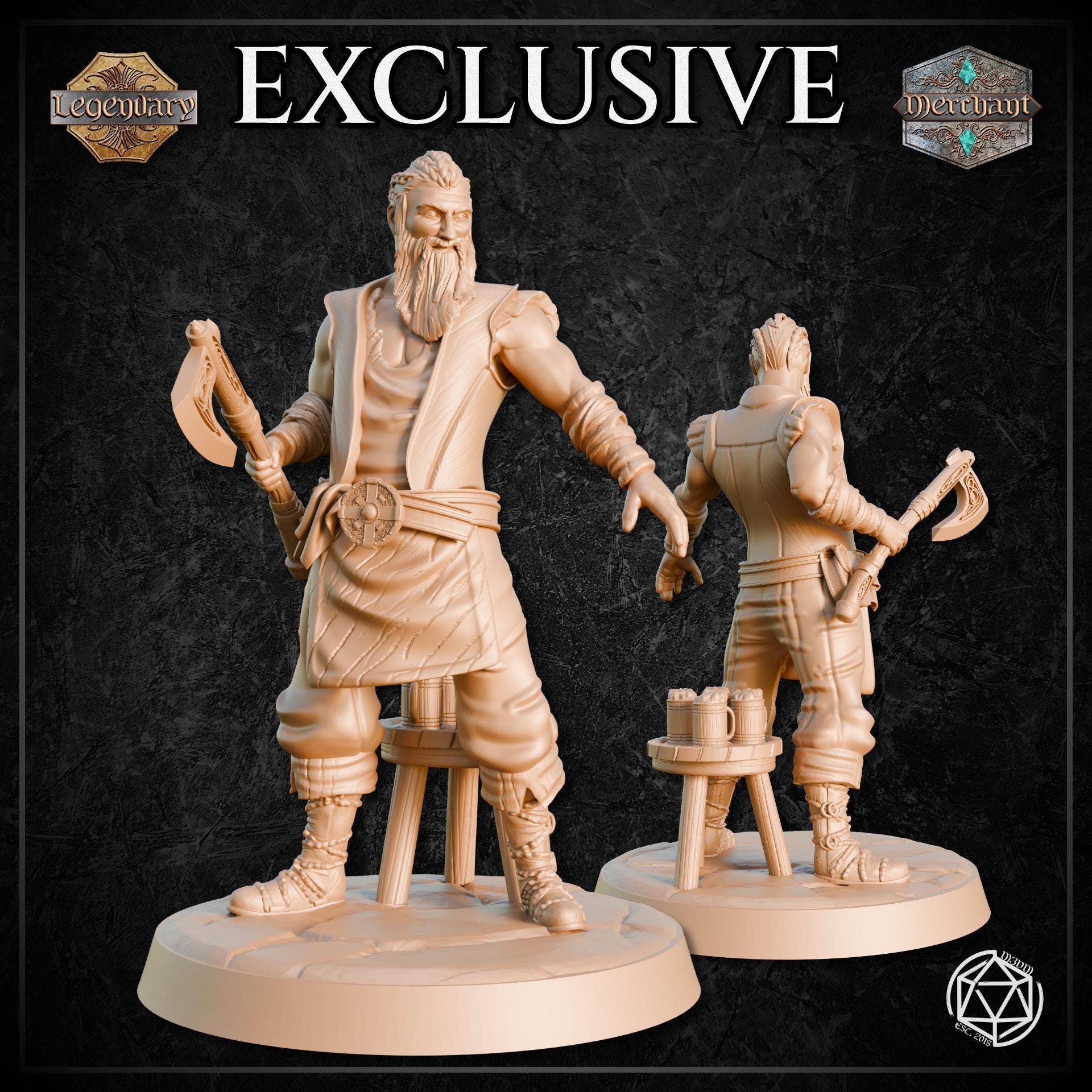 Viking Barkeep 2 – 28mm or 32mm Resin Miniature | D&D 3D Printed Figure Fantasy