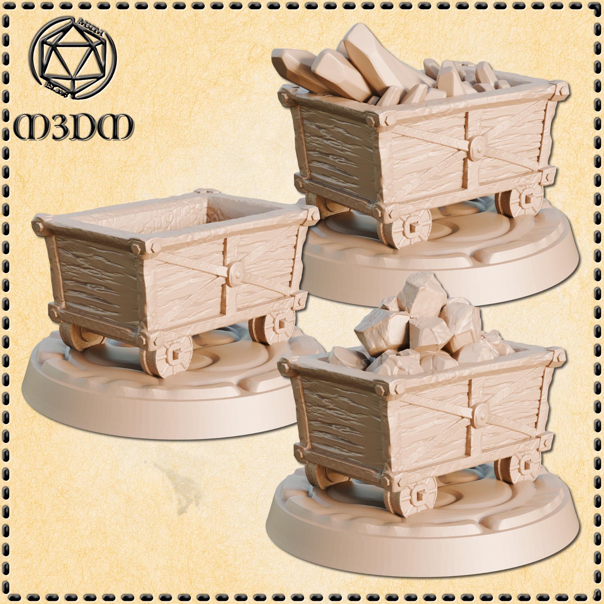 Mining Carts (3 Versions) – 28mm or 32mm Resin Miniature | D&D 3D Printed Figure Fantasy
