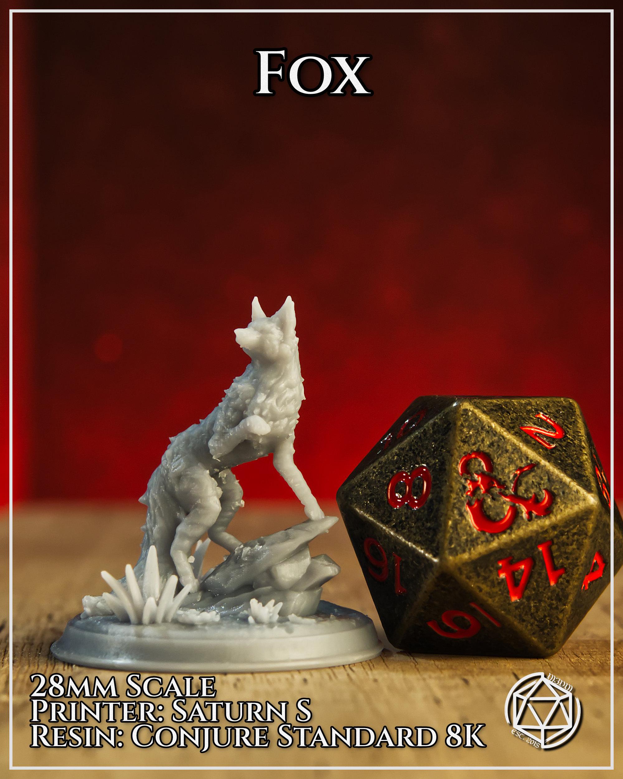 Fire Elemental Fox 2 – 28mm or 32mm Resin Miniature | D&D 3D Printed Figure Fantasy