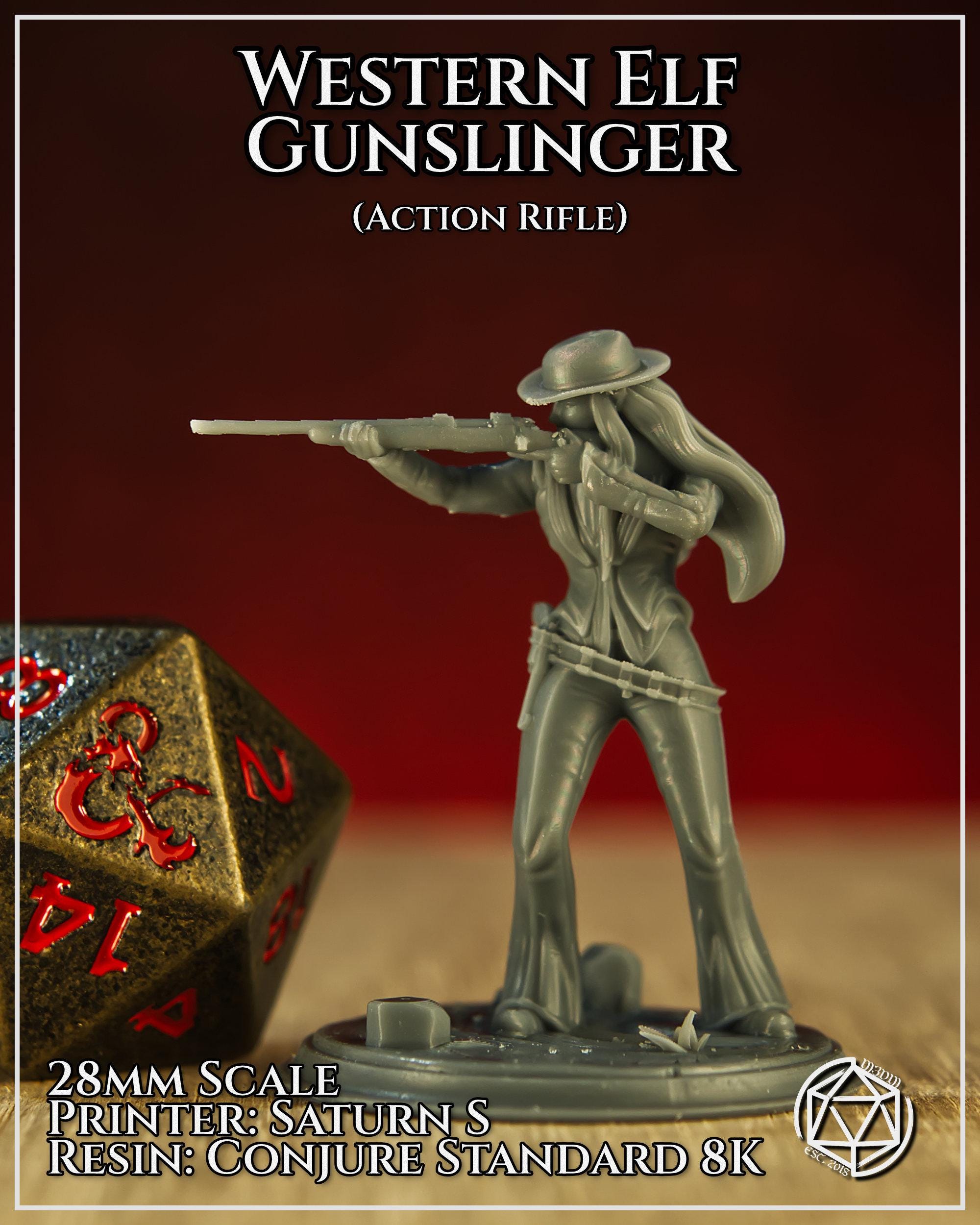 Western Elf Gunslinger 2 – 28mm or 32mm Resin Miniature | D&D 3D Printed Figure Fantasy