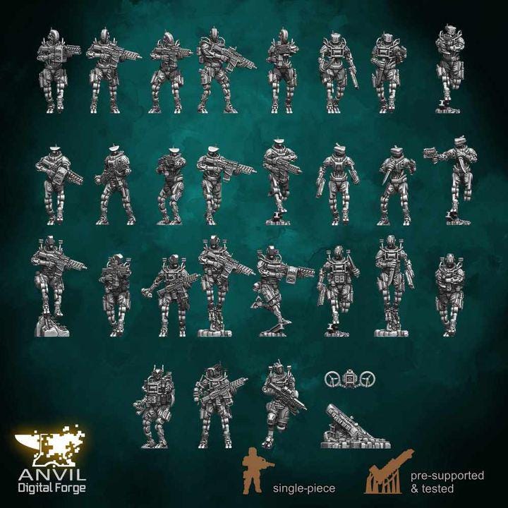 Automata Future Military Robots - Modular Infantry Skirmish Tabletop Wargame Mini 32mm Figure Full Set
