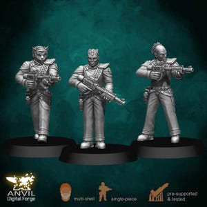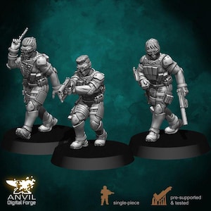 27 figures and 1 UAV Drone ready for you to paint and play, with no assembly required other than basing! All included figures are posed in unique variations. Where it makes sense, they have been grouped into squads of similarly equipped figures.