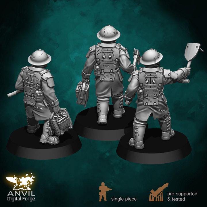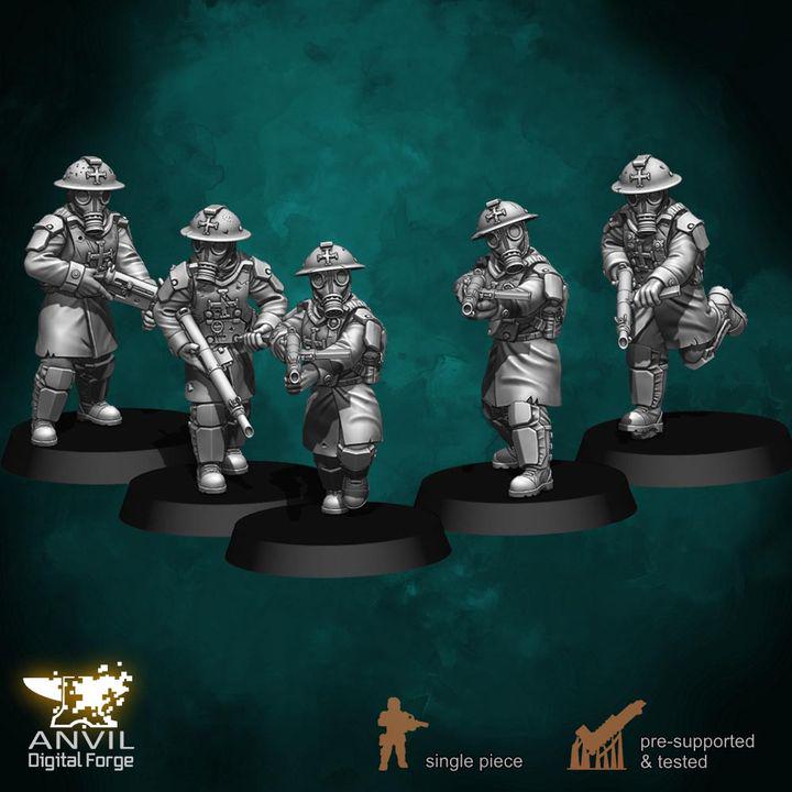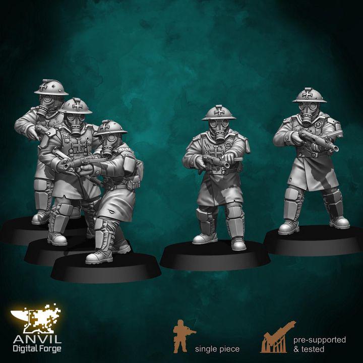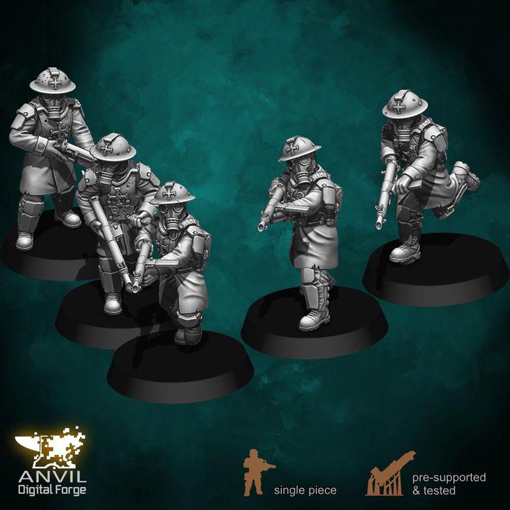 All Included figures are posed in unique ways, clad in heavy Trencher armor, and most have gasmasks