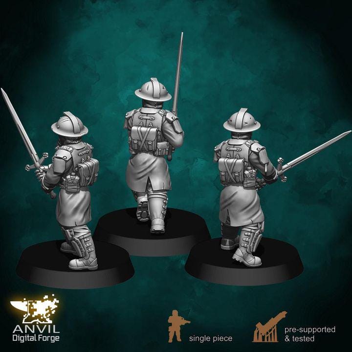 Armored Trench Raiders - Infantry for Skirmish Tabletop Wargames Mini 32mm Figures Full Set
