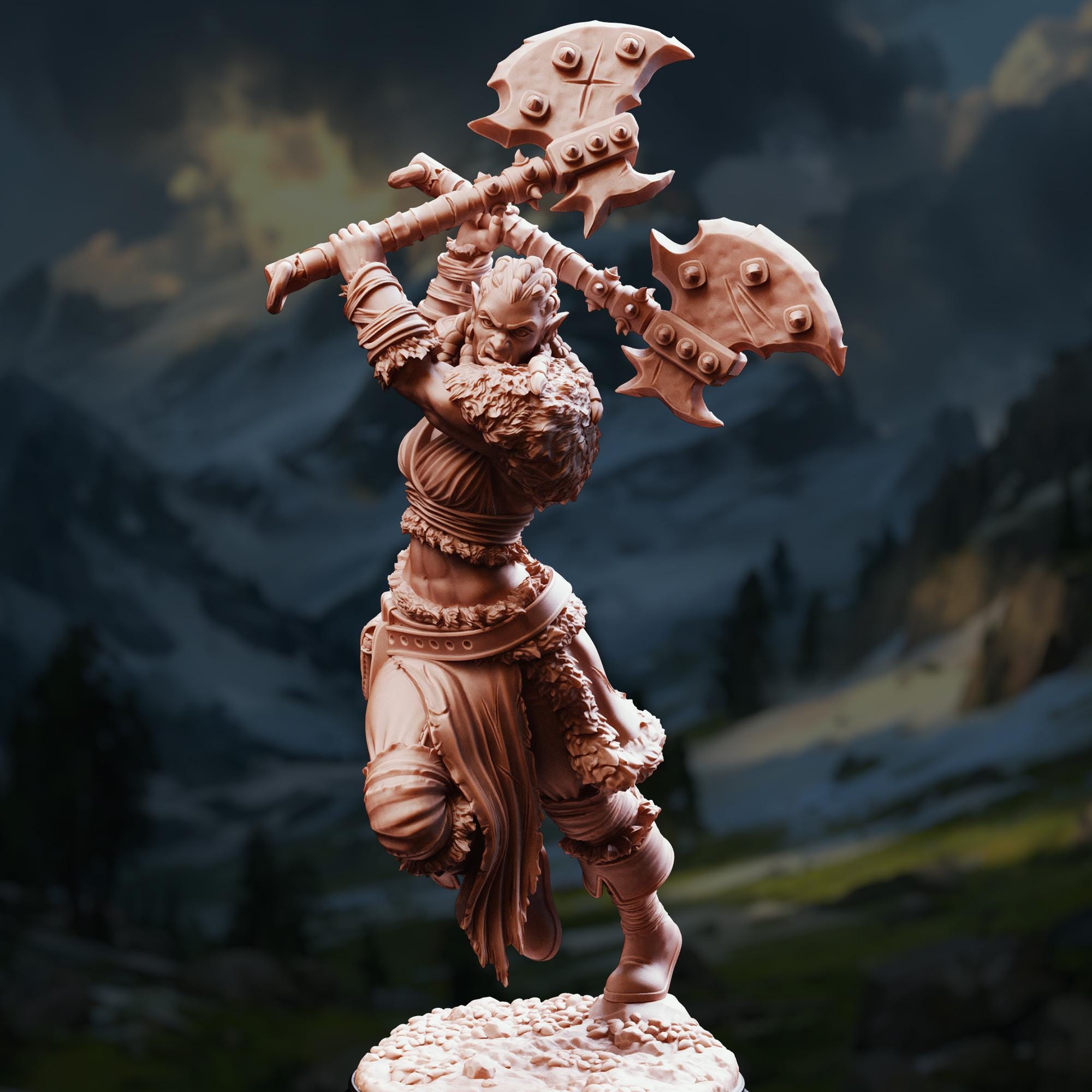 Half-Orc Barbarian - Tekrana of the Bloodfangs 32mm Resin Miniature D&D 3D Print DND